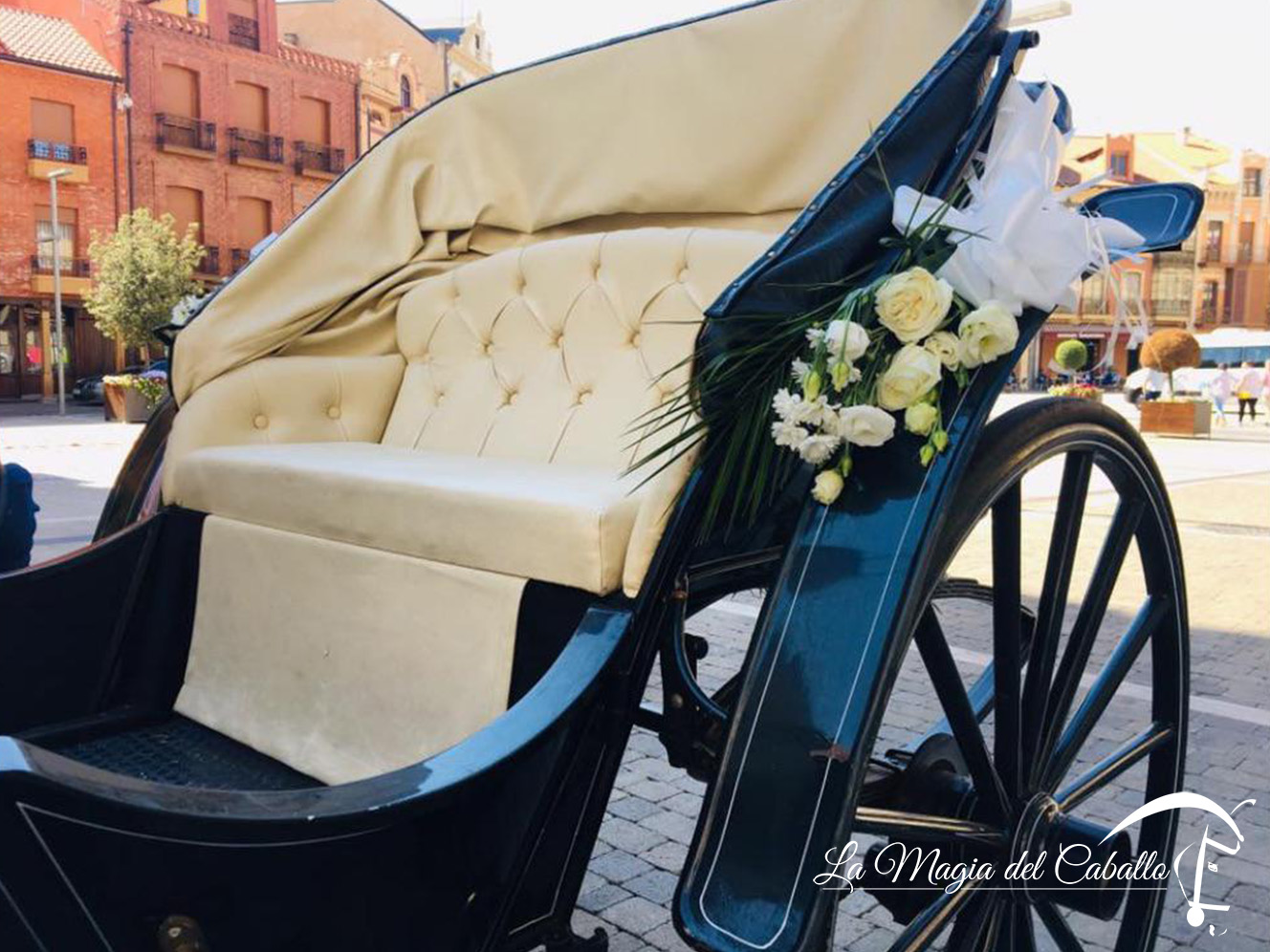 Lo ofrecemos con diferentes opciones estéticas de la indumentaria del cochero para cualquier estilo de boda, desde la más clásica hasta la más flamenca.